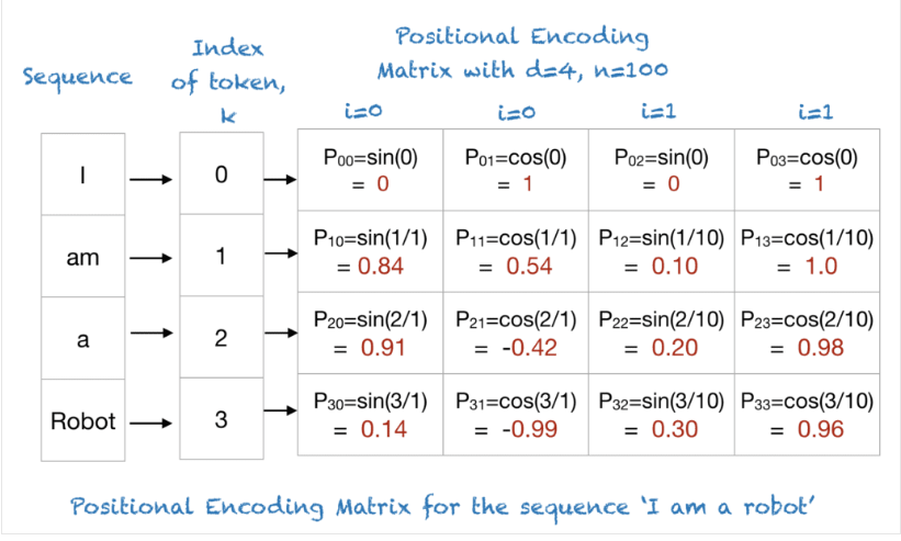 - = token’s index in the sequence (0th, 1st, 2nd …).