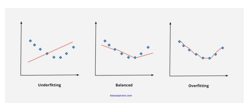 It measures how far the model’s average predictions are from the true values. - High bias example: Using a straight line to fit curved data → model is too simple.