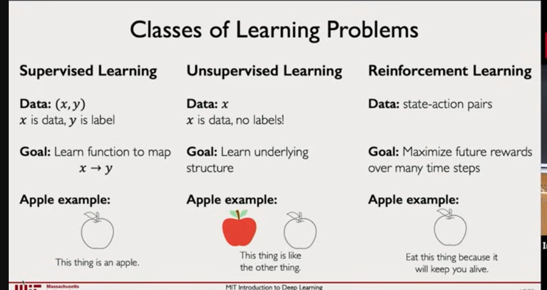 - Reinforcement learning →based on feedback