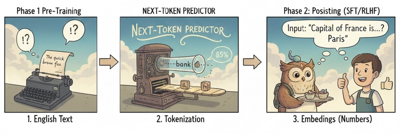 Phase 1: Pre-Training (Learning Patterns from the Internet)